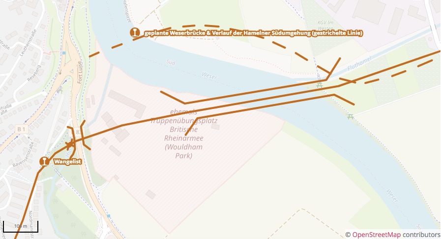 3. Wie soll die B83 in Klein Berkel unterquert werden? Du willst ja vorher noch die Humme überqueren, die Bahntrasse muss mindestens 6,5m tiefer liegen als die B83!